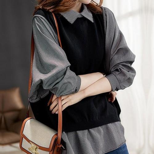 [블랙퀸]에뜨 레이어드st 잔체크 블라우스 blk002169