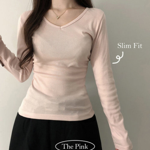 더핑크 / 베카 슬림핏 브이넥 옆셔링 긴팔티