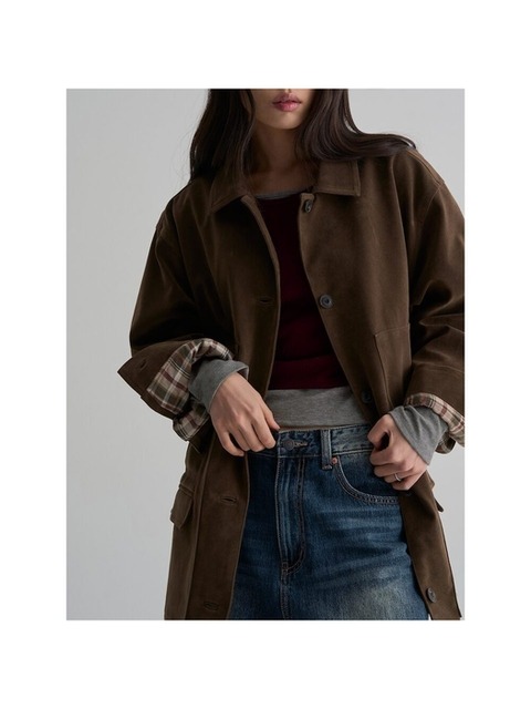 [디바옴므]스트랩 스웨이드 무스탕 점퍼 라이더 자켓 재킷