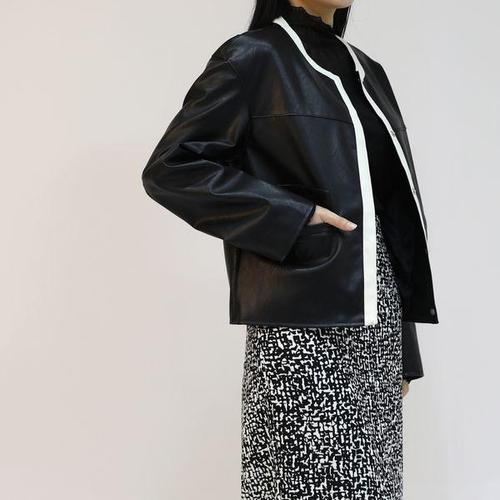 [제이블랑]배색 라운드 에코레더 자켓 BDE1LD001
