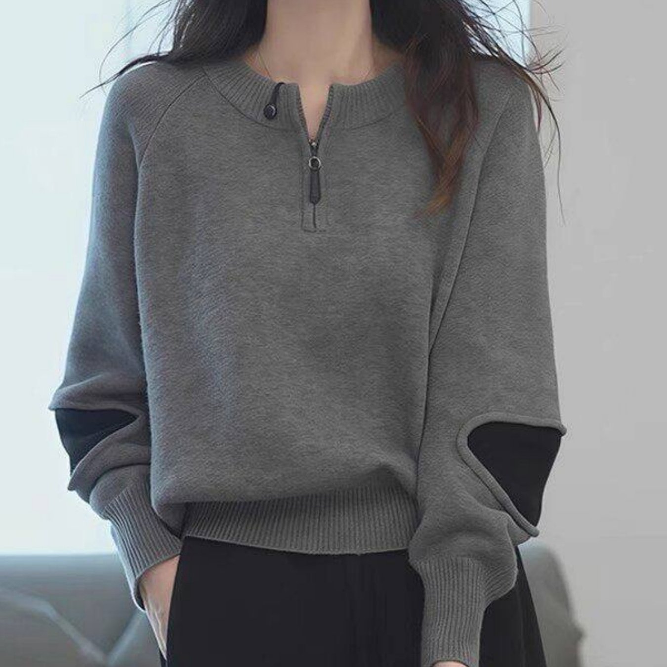 TEMU 대비되는 컬러 스플라이싱 하프 지퍼 여성용 2026년 신상 루즈핏 라운드넥 긴팔 패션 스웨터 하의 셔츠 탑