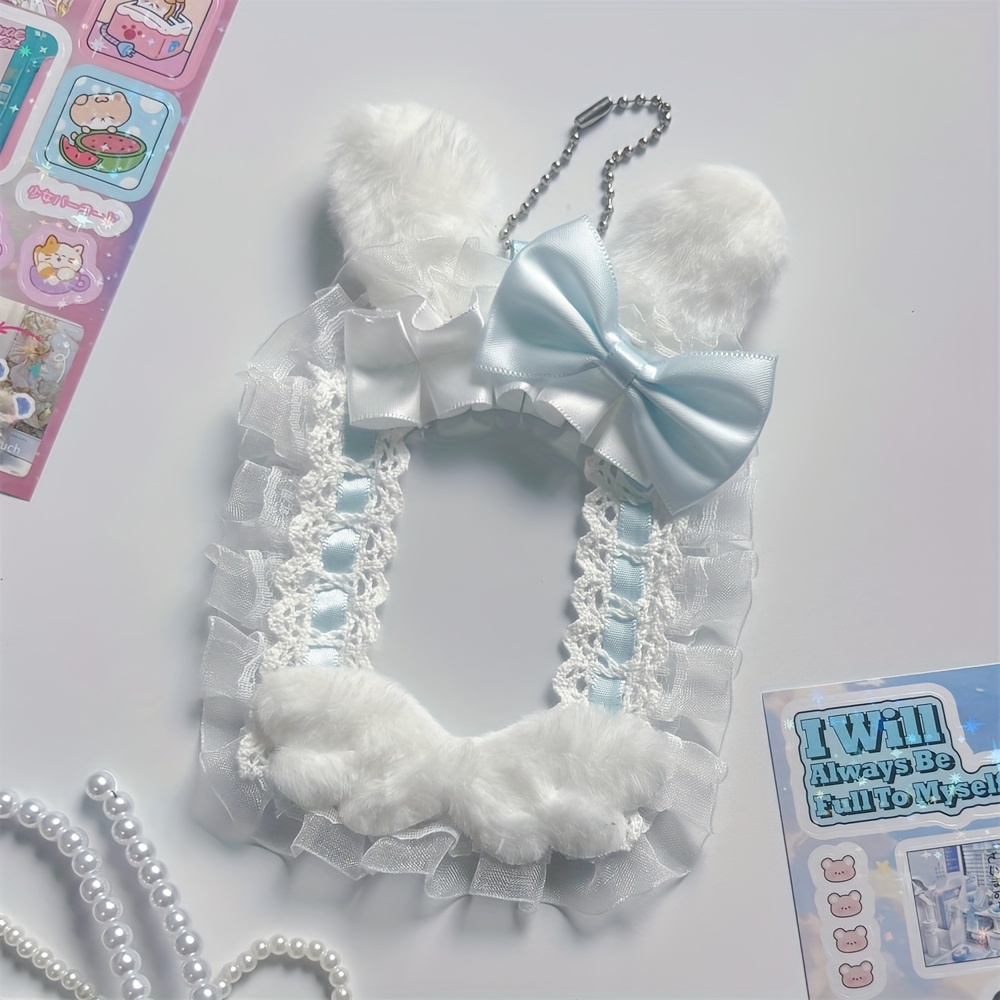TEMU 3인치 한국 스타일 천 포토 프레임 홀더 - 리본 장식 키체인, 가방, 홈 데코용 귀여운 메모리 액세서리