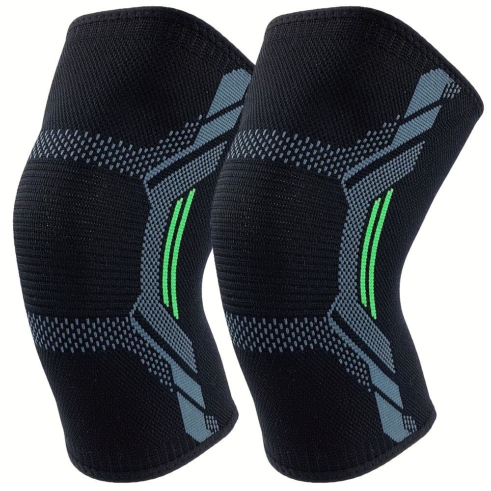 TEMU 남성 및 여성용 고탄력 무릎 압박 슬리브 2개 세트 - 통기성이 좋은 지지대와 강화 패딩이 있는 네온 그린 악센트, 러닝, 체육관 트레이닝, 웨이트 리프팅을 위한 인체공학적 디자인의 운동 브레이스 | 매끈한 소매 디자인 | 제약 원단|무릎보호대