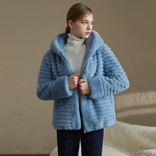 [엘루아][엘루아] VEGAN FAUX 밍크 후드 하프코트_블루