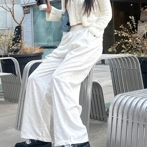 [옷자락] 여성 플라워 엠보 투웨이 스트링 조절 와이드 밴딩 팬츠