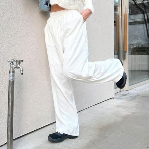 [옷자락]여성 플라워 엠보 투웨이 스트링 조절 와이드 밴딩 팬츠