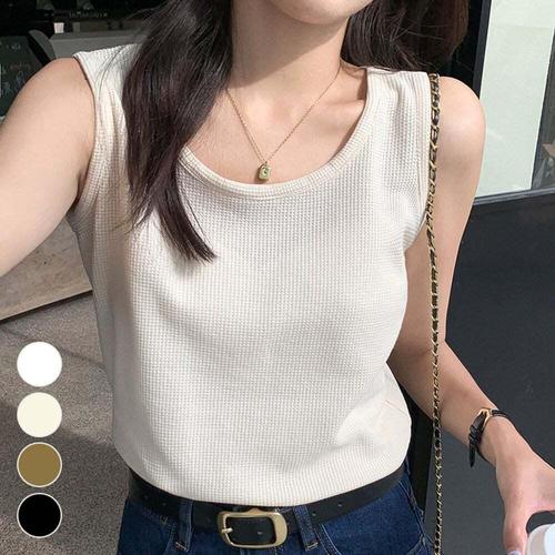 [셀럽하우스]와플면 ARAK5484 민소매 여름 여자 ?은 나시 티셔츠