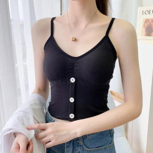여성 여름 심플 베이직 이너 단추 나시 민소매