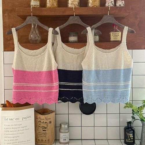 [옷자락]여성 여름 배색 부클 니트 스카시 조끼