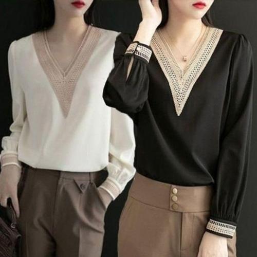 [엄지척]봄 여성 브이넥 가을 긴팔 예쁜 블라우스 레이스 여름_19651790_667501