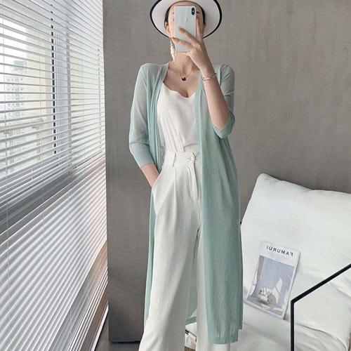 여자옷코디 여자 얇은 롱 가디건 여름 사무실 데이트 패션 코디