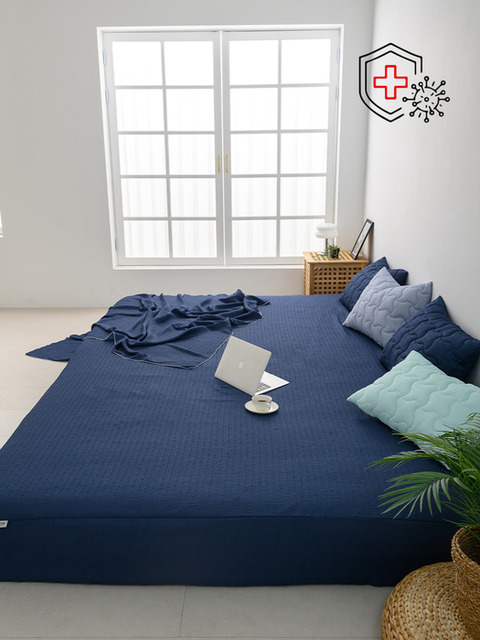 침대커버 팬션 여행용 침구 여름 매트 샤이니 40수 순면 홑 매트리스커버 퀸 Q 네이비