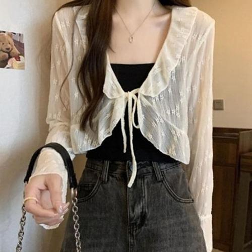 여자 여름 시스루 레이스 빅카라 크롭 볼레로 가디건