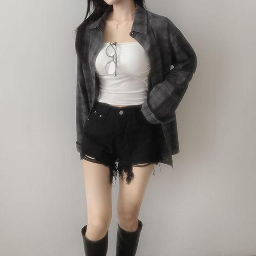 [라이니]소라 여리핏 박시 체크 여름셔츠 to-2459c