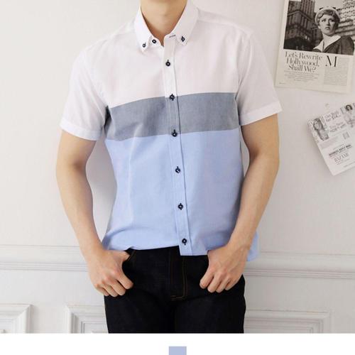 슬림핏반팔셔츠 배색 여름 여름셔츠 플로우 반팔 (WFHX80Q)