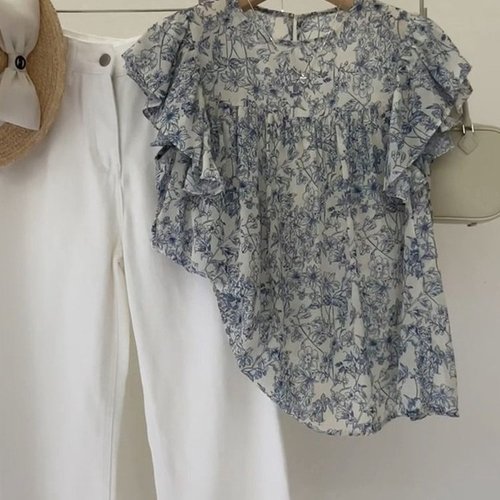 제로투올샵2 / 여름 프릴 쉬폰 셔츠 블라우스 여성용 꽃무늬 사진 색상 XL