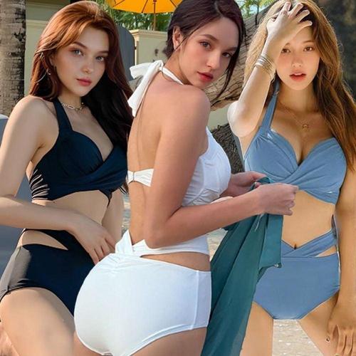 여성 여름 스트랩 비키니 투피스 3컬러 캡일체 수영복 WEC863A