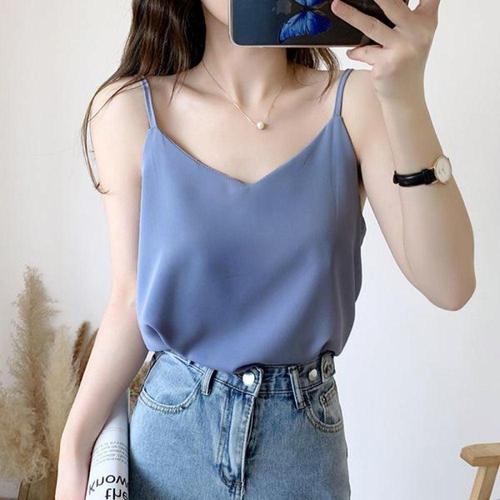 브이넥 여성 끈나시 여름옷 휴가복 WFKNYB0