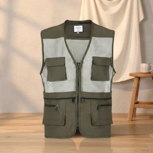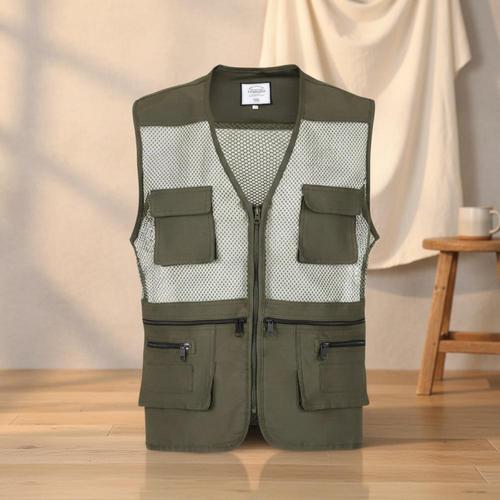 플라이고 남성 여름 캐주얼 경량 통기성 메시 사이클링 여행용 지퍼 조끼