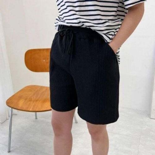 [XBH5I26O]남자 여름 차이블 플리츠 반바지 허리밴딩