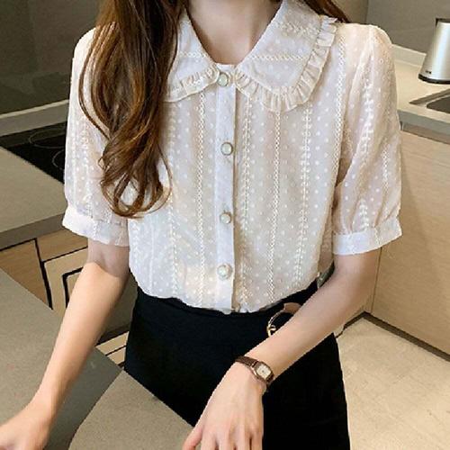 [엄지척]베이지 자수 프릴 여성 반팔 여름 블라우스 남방_19650525_667501
