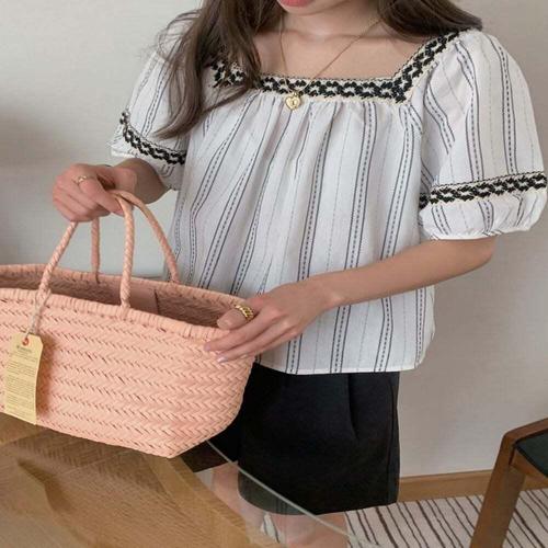 [셀럽하우스]봄 EUVR7479 여름 코디 여자 스퀘어 자수 블라우스