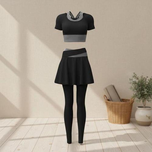 [셀러허브_여성트랜드패션]여성 반소매 요가필라테스 봄여름 치마레깅스