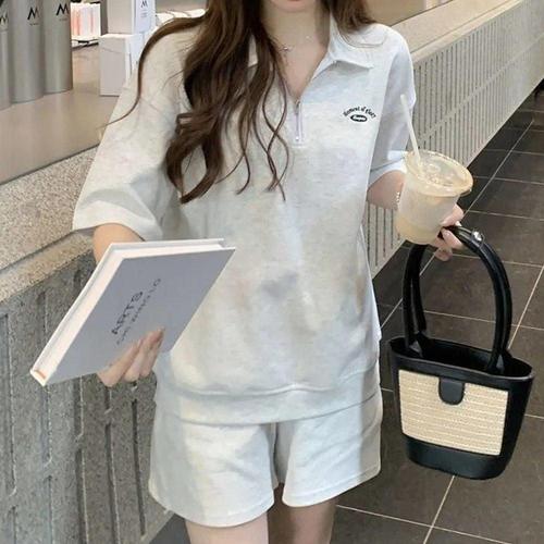 여자 반팔 트레이닝복 세트 여름 편한 1P 반집업 셋업