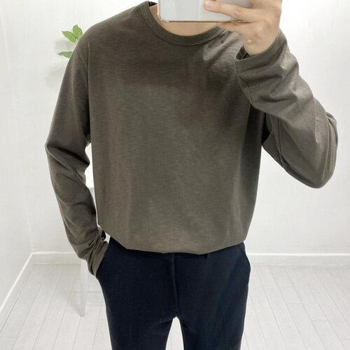 [맨커버]남자 워싱 긴팔티 봄 여름 면 슬라브 무지 티셔츠