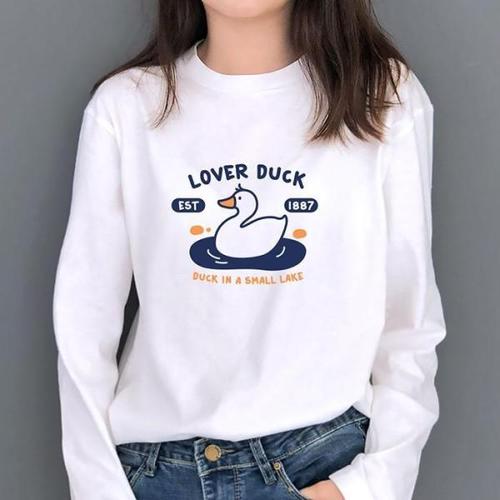 [험블스튜디오][험블스튜디오] 오버핏 오리 레트로 로고 프린트 라운드넥 여름긴팔티셔츠 화이트 (3669482)