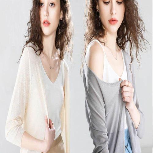 여성 여름 브이넥 스타일 얇고 시원한 긴팔 가디건 롱 니트