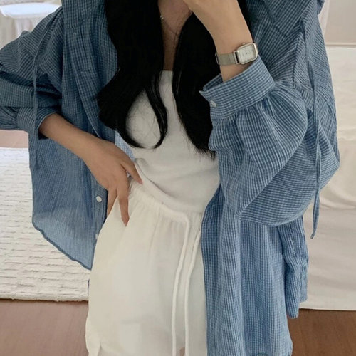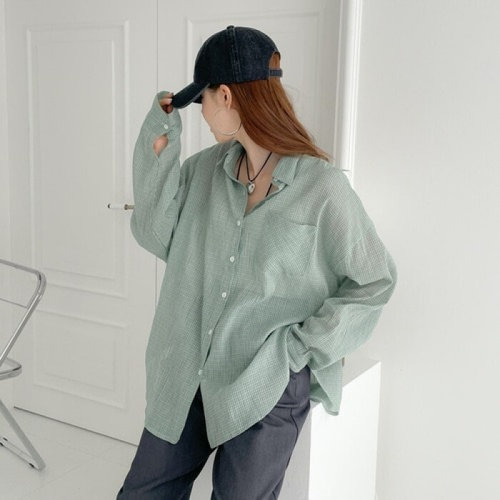 보니제이 / 시스루 여성 남방셔츠 블라우스 셔츠 썸머 오버핏 6co