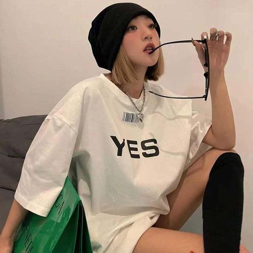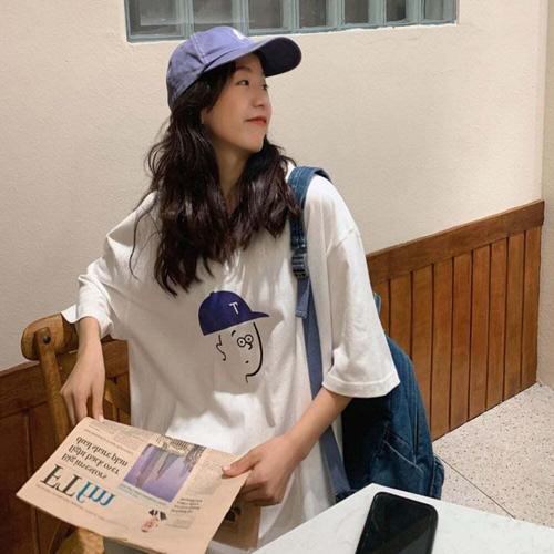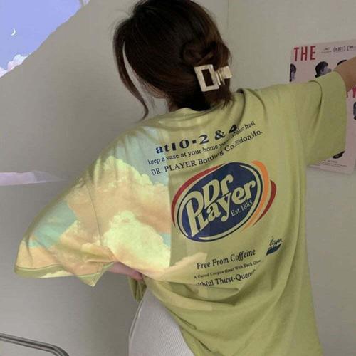 루즈핏 여성티셔츠 레트로 여름박스티 박스 티셔츠 여 WD7DAA7