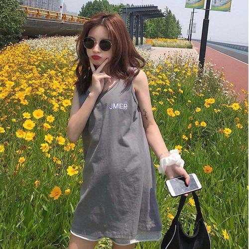 [셀럽하우스]여성 CFMI2166 여름 루즈핏 레터링 박스티 롱 나시티 민소매티