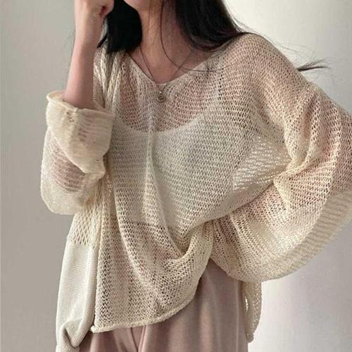 [셀러허브_여성트랜드패션]ONM 썸머 브이넥 니트 얇은 시스루 루즈핏 비치웨어