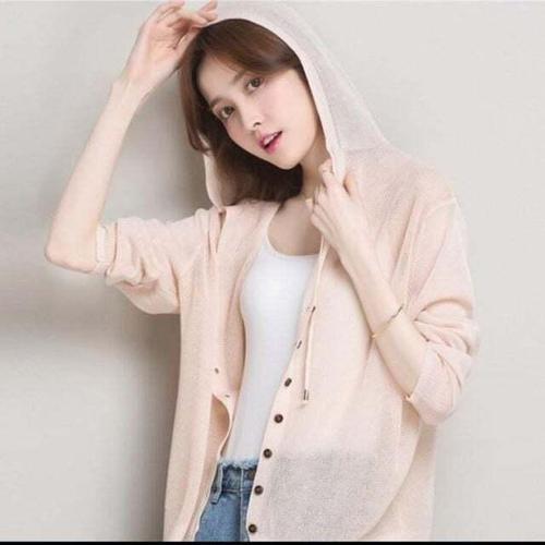 [셀럽하우스]가디건 VREA1499 비치웨어 간절기 여름 후드 시스루 니트가디건