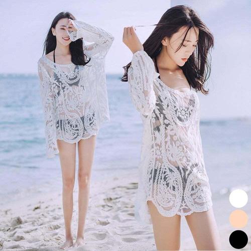 [셀럽하우스]시스루 XTYQ4117 여성 롱셔츠 비치웨어 커버업 여름 긴팔 셔츠