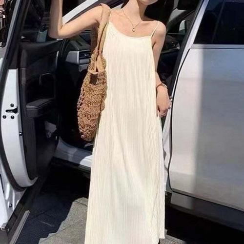 [셀럽하우스]여성 HPFC7740 휴양지 여름 해변 플리츠 끈나시 롱 원피스