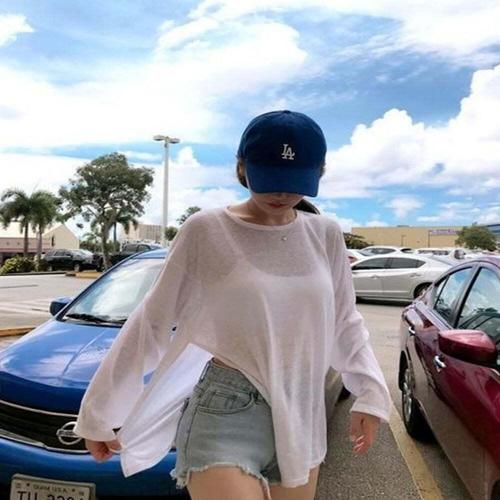 [셀럽하우스]여름 MQAU1907 시스루 티셔츠 긴팔티 사이드 비치웨어 트임