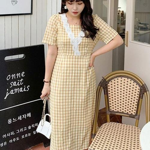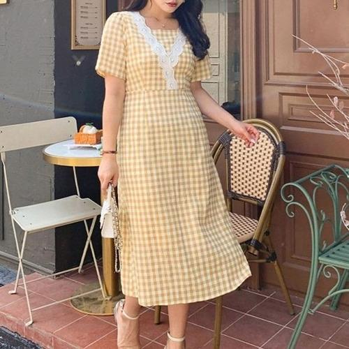 [엄지척]여자 체크 일상 트렌드 반팔 롱원피스 데일리 여름 치_19957719_667501