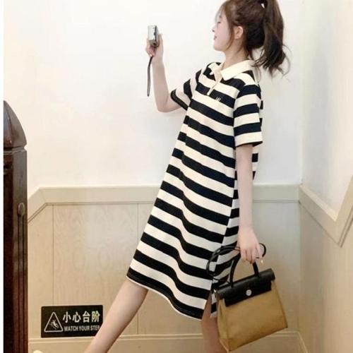대학생 여자 여름 카라 넥 반팔 원피스 스트라이프 WFL6W2K