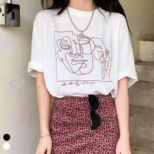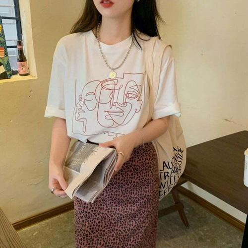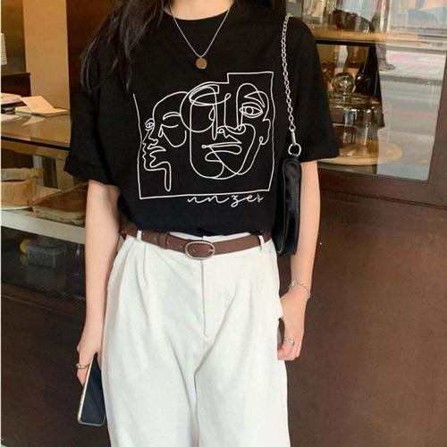 [셀럽하우스]여자 WOQF6665 2컬러 여름 모던 드로잉아트 프린팅 반팔티셔츠