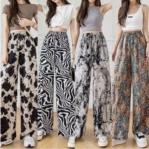 라인댄스복하의 여성 얇은 프린트 퀼로트 바지 여름 쉬폰 팬츠 풋 스플릿 레그 하이웨스트 댄스 마우스 와이드