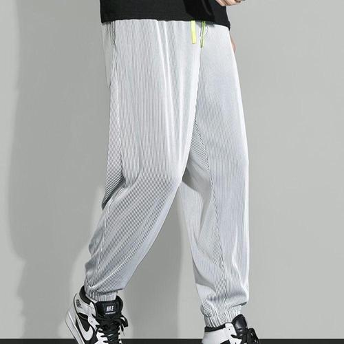 여름 얇은 아이스 실크 바지 대형 통기성 스트레이트 캐주얼 바지 속건 남성 운동 바지