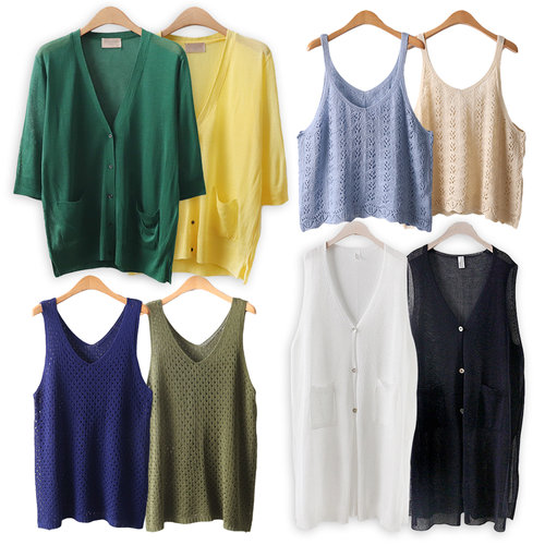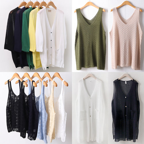 여름 옷 빅사이즈 아이스 쿨 숏 가디건 스카시 크롭 니트 조끼 중년 엄마