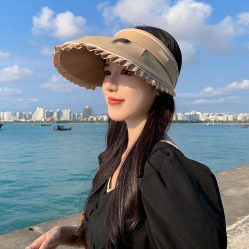 돌돌이썬캡 프릴리즈 크로스백 썬캡 와이드 그늘 여름모자 베이지 WFKPWUD