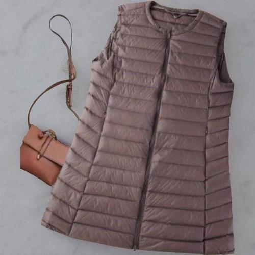 [옷자락]여성 일상용 노카라 경량 퀼팅 롱 패딩 조끼
