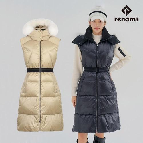 레노마 골프 여성 겨울 경량 구스다운 롱패딩 후드 조끼 M/8310