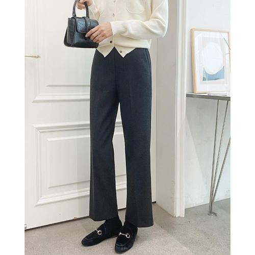 [옷자락]여성 레이온면 울혼방 뒷밴드 일자 기모 슬랙스