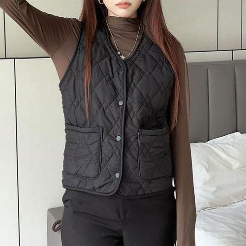 [셀러허브_여성트랜드패션]Rly 내피 깔깔이 깔깔이 카키 내의 패딩 조끼 겨울점